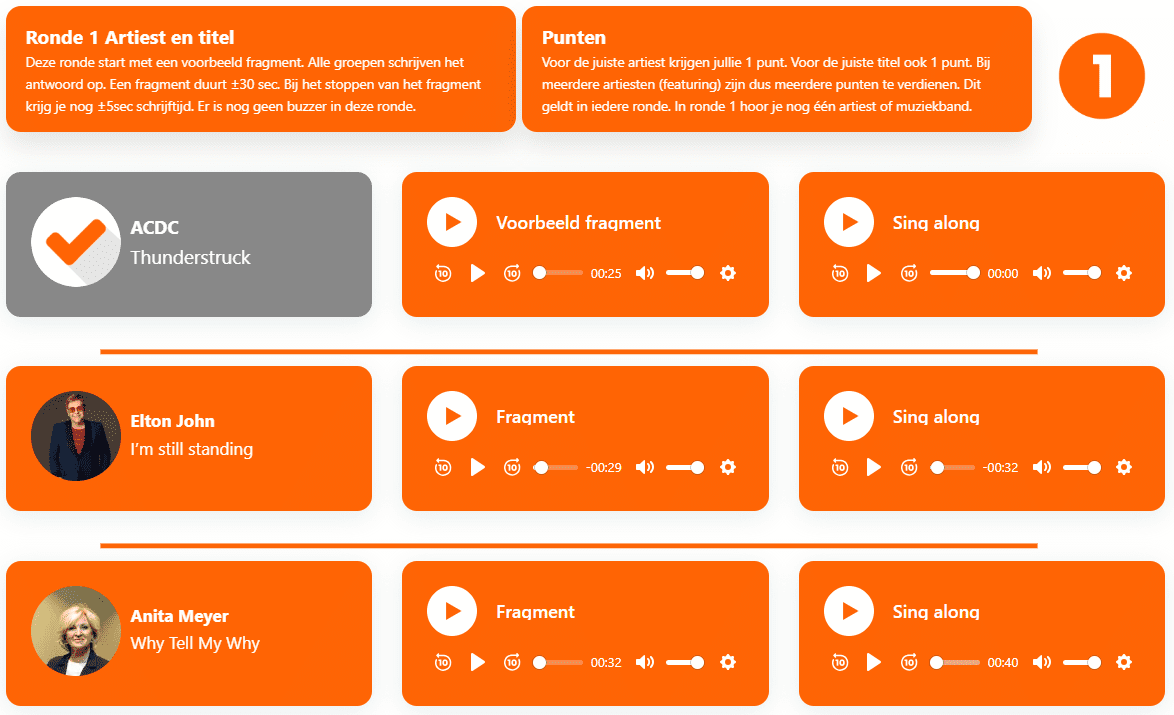 UITSTEKEND Gebaseerd op 7 recensies Geplaatst op M KTrustindex verifieert dat de oorspronkelijke bron van de recensie Google is. Super leuke kerstquiz gespeeld met de hele familie! Veel variatie in rondes, muziek, artiesten. Echt een aanrader!Geplaatst op Maike LeuverinkTrustindex verifieert dat de oorspronkelijke bron van de recensie Google is. Mijnmuziek quiz is een zeer complete quiz, waar je je uren mee kunt vermaken. Je kunt ook enkele delen van de quiz nemen voor een break in de avond. Er zit genoeg variatie in de quiz. De uitleg is stap voor stap een heel duidelijk. Zelfs een digibeet komt hier uit. Je kunt bepaalde onderdelen ook met pen en papier doen. Dat is ook fijn. Ik kijk uit naar de zero’s. Maaike LeuverinkGeplaatst op Iris FluttertTrustindex verifieert dat de oorspronkelijke bron van de recensie Google is. Wij hebben gekozen voor de kerstquiz, een aanrader! Zowel om te spelen met familie, vrienden als met collega's. Veel afwisseling, een mooie mix tussen 'gemakkelijk en moeilijk', kortom een aanrader! Als quizmaster heb je alles bij de hand, er zijn geen extra moeilijke handelingen nodig. En ook voor deze prijs, toppertje!Geplaatst op Johwie BosTrustindex verifieert dat de oorspronkelijke bron van de recensie Google is. Wat een prachtige quiz. Bedankt quizmaster! Hier bestel je pure kwaliteit!Geplaatst op HylkeTrustindex verifieert dat de oorspronkelijke bron van de recensie Google is. Leuke quiz om te doen. Gezellig om met de familie te spelen! Voor de neefjes was het top dat er een kinderquiz bij zat!Geplaatst op Anne Bastmeijer-LentfertTrustindex verifieert dat de oorspronkelijke bron van de recensie Google is. We waren blij verrast hoe goed deze quiz in elkaar zit en hoe leuk het was om hem te spelen. Het was afwisselend en elke ronde was daardoor opnieuw spannend. Ook mensen wie van te voren zeiden slecht te zijn in titels/artiesten herkennen, vonden het uiteindelijk heel leuk, omdat ze ook dingen zoals neuriën/filmmuziek/tekst leren mochten doen. We vonden het zelfs zo leuk dat we tijdens ons vriendenweekend 2 quizzen hebben gespeeld! De laatste ronde zorgt ervoor dat er qua punten nog van alles kan gebeuren, dat was spannend en grappig!Geplaatst op Leon BakkerTrustindex verifieert dat de oorspronkelijke bron van de recensie Google is. Mooie Quiz